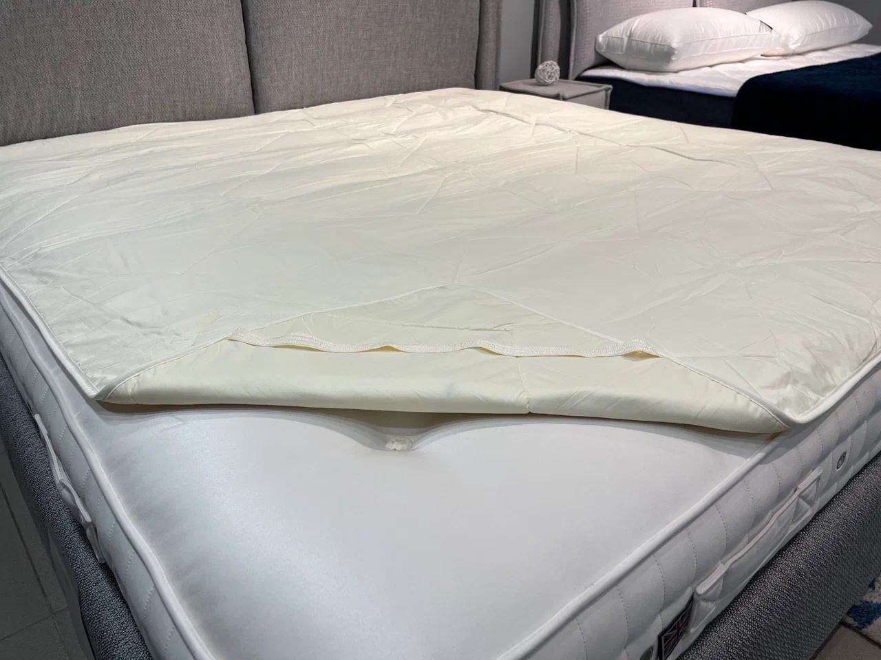 В дополнение к лучшим кроватям в мире лучшие аксессуары! Высокое качество и роскошный комфорт! Vispring рекомендует использовать наматрасник как дополнительную защиту для матраса, чтобы поддерживать матрас в прекрасном состоянии, а так же для того чтобы выровнить и сделать поверхность более комфортной. Ведь известно, что матрасы Vispring производятся по классической технологии ручного тафтинга и имеют на поверхности розетки-стяжки. Эти розетки отлично закрываются наматрасником.