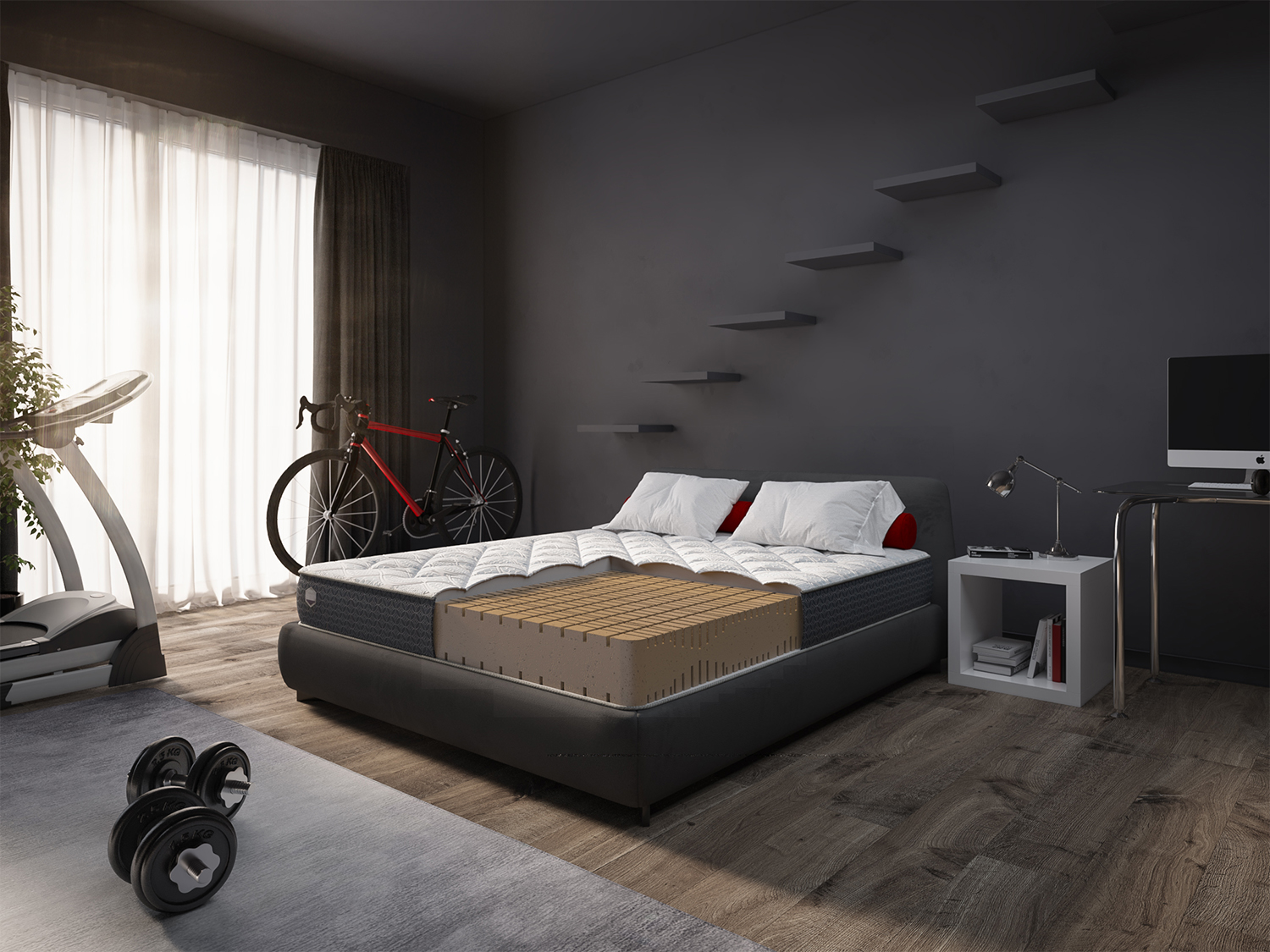 Матрас состоит из особой ортопедической пены, которая разработана специально для матрасов Alfabed. Материал принимает форму тела лежащего человека, что облегчает засыпание и смягчает движения во время сна. Оптимальная жесткость делает матрас подходящим для значительного числа людей. Мультизональная модель, каждая зона способствует достижению комфортного положения тела и крепкому сну.