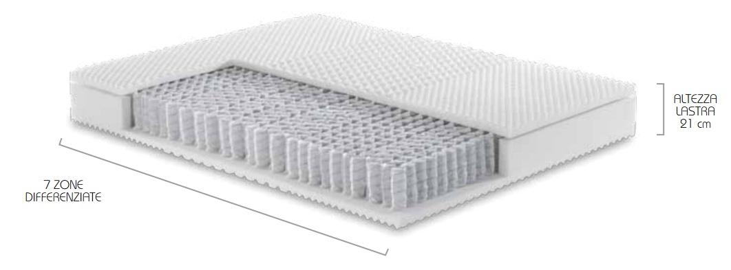 Основу матраса составляют 326 пружин, каждая из которых заключена в отдельный мешок. Пружины разделены на 7 областей и различаются степенью жесткости. Она зависит от области тела, для которой предполагается поддержка. Пружинные элементы равномерно распределены по всему матрасу, как в центре, так и по краям, поэтому на нем удобно спать в любом положении. Поверхность матраса имеет особую форму для правильного воздействия на организм и крепкого сна.