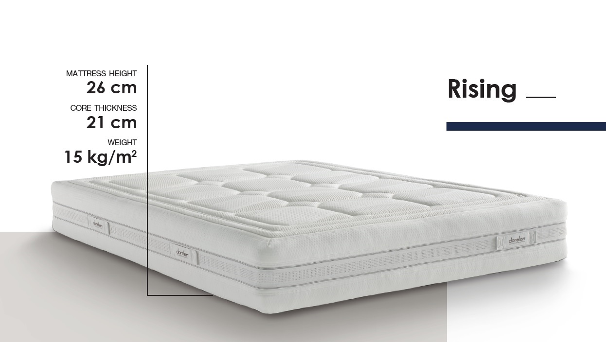 Благодаря 2000 независимых спиральных пружин Dorelan Rising (матрас средней жесткости из серии матрасов TWIN 2000) и системе 7 зон с различным уровнем поддержки на протяжении многих лет, ночь за ночью, сможет обеспечить эффективную, точную и упругую поддержку каждой части тела с учетом индивидуальных особенностей.