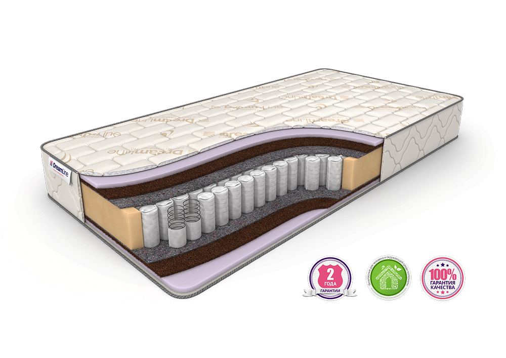 В качестве наполнителя выступает пенополиуретан (искусственный латекс, пропускающий воздух, влагу, гипоаллергенный). Термопрессованный войлок исключает губительный контакт мягких слоев наполнителя об пружины.