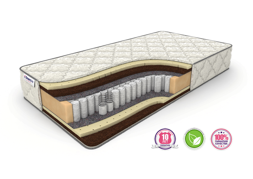 Переворот премиум класса. Поверхности матраса смонтированы на пружинном блоке TFK, гасящим нежелательные колебания. Сторона А: внутренний наполнитель - латексированная кокосовая койра, обладающая великолепными ортопедическими свойствами, внешний наполнитель – натуральный латекс, способный принимать форму погруженного на него тела. Сторона Б: всё наоборот – внутренний наполнитель – натуральный латекс, отвечающий за анатомичность матраса, внешний наполнитель – латексированная кокосовая койра, придающая конструкции лёгкие нотки жёсткости. Изолирующий слой из Льноджутового волокна служит прекрасной защитой нежного латекса от трения о металл пружин, продлевая срок службы матраса. Конструкция способна выдерживать нагрузку до 130 кг на одно спальное место.