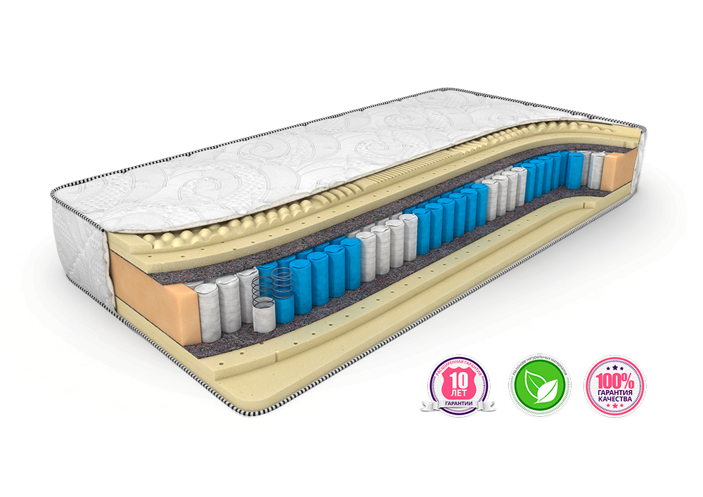 Пружинный блок Smart Zone - это блок независимых пружин, заключенных в тканевые чехлы из материала спандбонд (250 шт. на 1 кв.м.). Конструкция данного блока поделена на пять зон, в каждой из которых располагаются пружины различной жесткости. Наиболее жесткие пружины располагаются в центральной части блока, так как туда приходится максимальная нагрузка, а так же в области головы и ног спящего соответсвенно. Таким образом, оказываемое воздействие от различных частей тела спящего по поверхности матраса становится однородным, тем самым достигая положительного ортопедического эффекта. Матрасы изготовленные на пружинном блоке Smart Zone отличаются: бесшумностью в эксплуатации, высокой ортопедичностью, отсутствием эффекта волны, возможен разновес спящих более 25 кг.