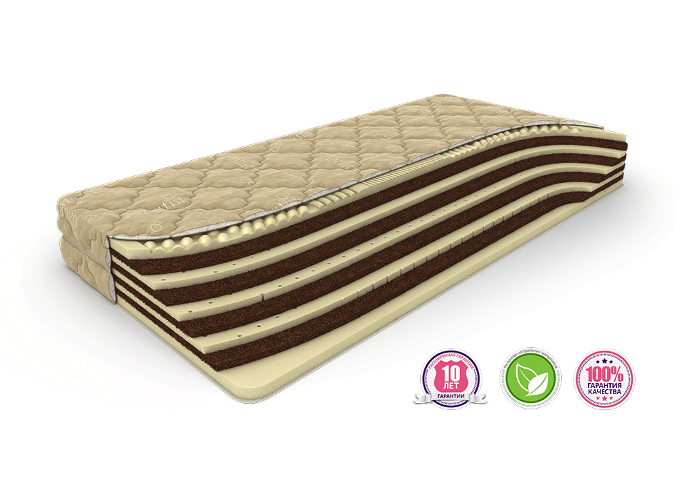 Mix Massage – отличается отсутствием пружин и натуральностью компонентов наполнения. Все наполнители этой модели матраса изготавливаются по современным и прогрессивным технологиям. Внутренность матраса состоит из попеременно уложенных слоев натурального латекса и бикокоса. Суммарно имеет среднюю жесткость и высоту 20 см. Основа матраса сделана из 4 слоев бикокоса (материал имеющий в основе природное кокосовое волокно) и 3 слоев натурального латекса, что размещены поочередно. Эта конструкция обеспечивает определенную жесткость, необходимую данной модели, а с обеих сторон дополняется верхним слоем 7-зонального латекса, который является лучшим из современных наполнителей для матрасов. Способствует расслаблению и спокойному сну в комфортных для организма условиях. Натуральность данного изделия имеет много преимуществ, так как данный наполнитель прекрасно «дышит» и устойчив к влаге. И самое главное, при длительной эксплуатации матрас не теряет своей формы благодаря натуральному латексу, который отвечает за упругость и эластичность изделия. Данный матрас способен выдерживать значительные нагрузки. Чехол матраса изготавливается из высококачественного велюра AntiStress.
