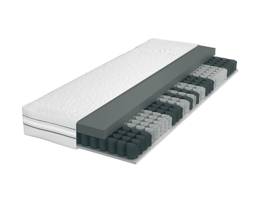 Независимый пружинный блок в основании матраса содержит невысокие изолированные пружины карманного типа (производство ? Германия). Чтобы стабилизировать пружины, увеличить их ортопедические свойства и продлить срок службы, каждый элемент прошел через закаливание и вшит в отдельный чехольчик. Благодаря этому исключена деформация пружин!
