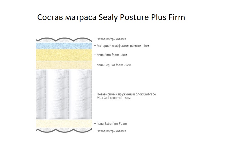 Матрас Sealy Posture Plus Firm – жесткая модель из серии матрасов Sealy Posture Plus - превосходная комбинация комфорта и поддержки. Основные преимущества модели: