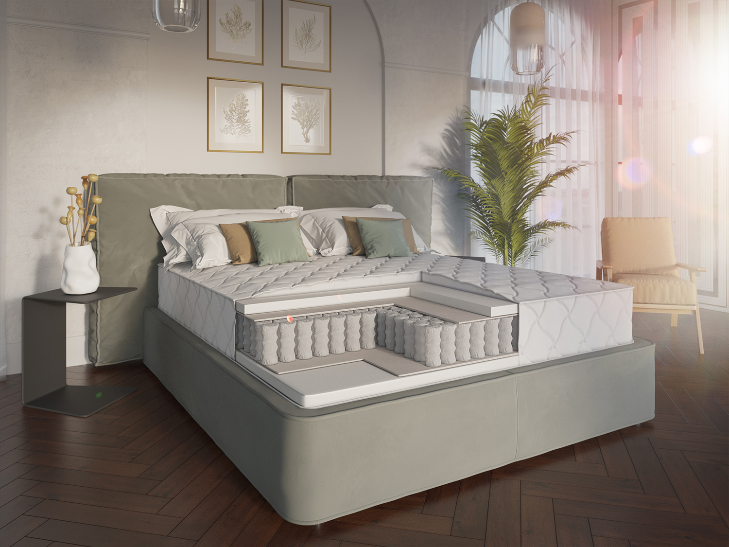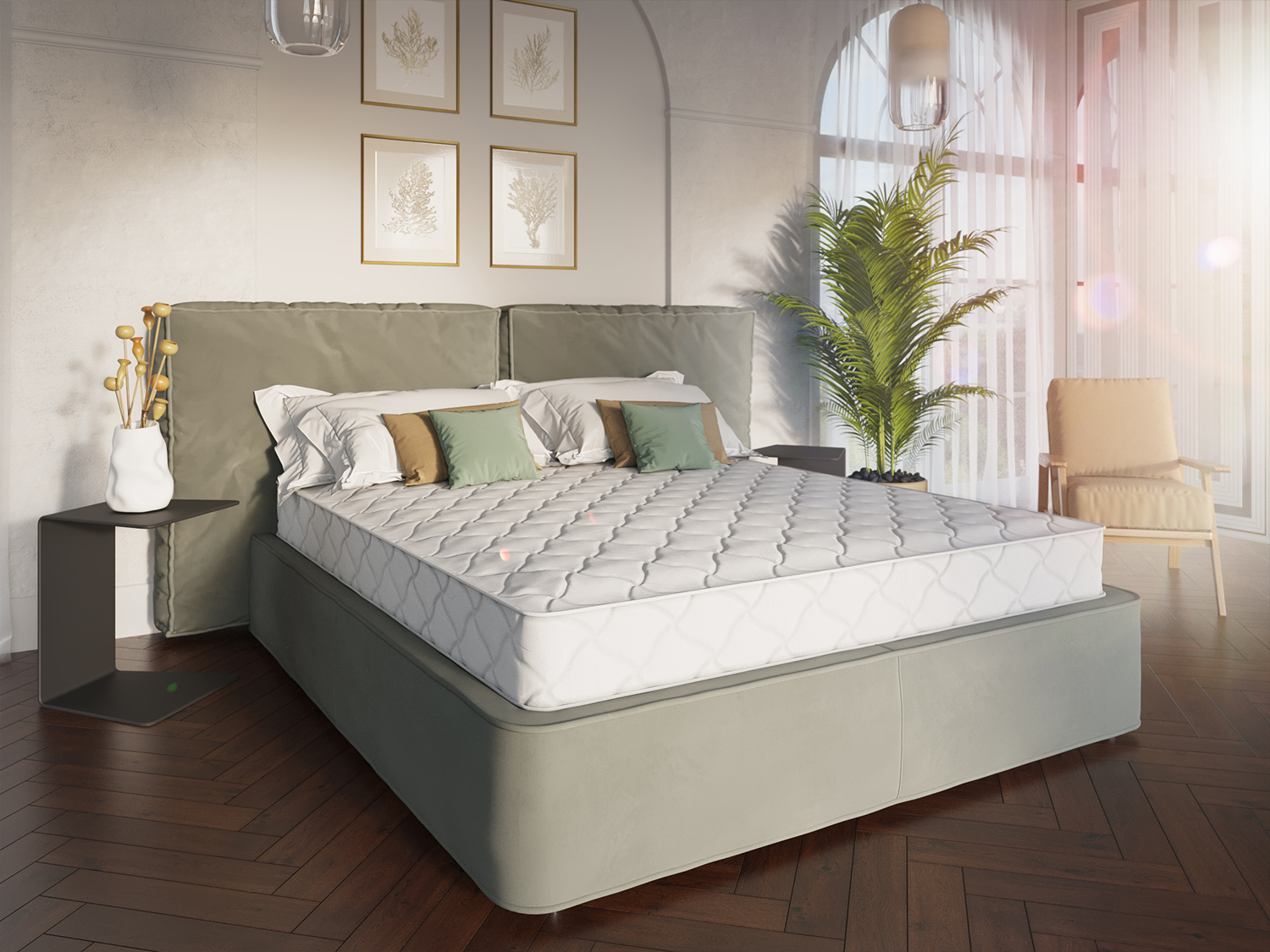 Матрас имеет 3 дифференцированных анатомических зоны жесткости, которые повышают ортопедические свойства изделия.