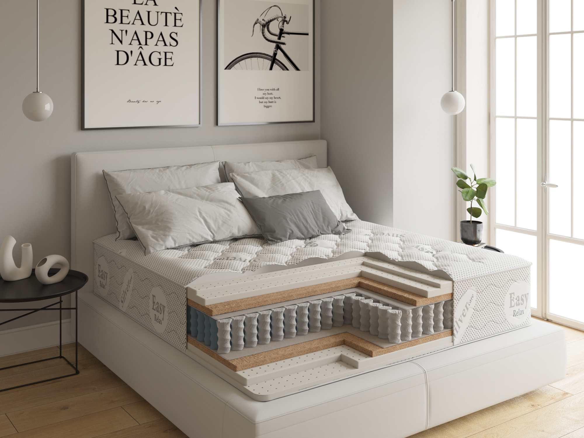 Довольно высокий и мягкий матрас, в основе которого ‒ независимые пружины и 100% натуральный латекс, чередующийся с контурным латексом. 7 анатомических зон для оптимального ортопедического эффекта. Комфортные слои защищены от протирания войлоком. Чехол сделан из хлопкового трикотажа с волокнами шерсти и бамбука (зима/лето). Специальное усиление по периметру Easy Seat. В основании модели Evita Desire – пружинный блок немецкой фирмы AGRO, который по праву считается одним из лучших. Уникальность матраса – в использовании пружин маленького диаметра и большой плотности в количестве 306 на кв. м (приблизительно 650 на спальное место). Сборка осуществляется в России на новейшем иностранном оборудовании. Благодаря этому покупатель не переплачивает за таможенные и транспортные расходы. Согласитесь, что доступная цена при высоком качестве не может не радовать! Серия тестов позволяет рассчитать точный срок службы матраса, который... • подстраивается под особенности телосложения конкретного человека, • оказывает точечный ортопедический эффект, • служит профилактикой заболеваний позвоночника и сосудистых изменений. Наполнителем является латекс – пористый, упругий материал: • обеспечивает правильную ортопедическую поддержку, • термостабилен (сохраняет свои свойства при изменении температуры окружающей среды), • оказывает антисептическое действие, • не вызывает аллергии, • прослужит долго. Полноценный ортопедический эффект обусловлен наличием в матрасе 7 анатомических зон жесткости. Разные части тела, как известно, нуждаются в разном уровне поддержки. В качестве изолирующей прослойки, предохраняющей мягкий наполнитель от истирания, используется термовойлок. Он отлично вентилируется и помогает влаге быстро испаряться. Система Easy Seat усиливает матрас по периметру за счет стальной рамы и короба из ППУ. Изящный чехол сделан из классического трикотажа: • поддерживает гигиенические свойства матраса, • сохраняет первоначальные потребительские свойства, • доставляет эстетическое удовольствие. Всесезонный материал BAMBOELLE – легкое нетканое полотно, включающее волокна бамбука, шерсти и хлопка, выполняет бактерицидную функцию. За счет вертикального расположения волокон в полотне достигается высокая эластичность и устойчивость к сминанию. Модель Evita Desire выгодно отличается от своих аналогов сбалансированной ценой. Собирается в соответствии с немецкими технологиями, которые характеризует высокое качество и надежность. 100% гарантия долгого срока службы!