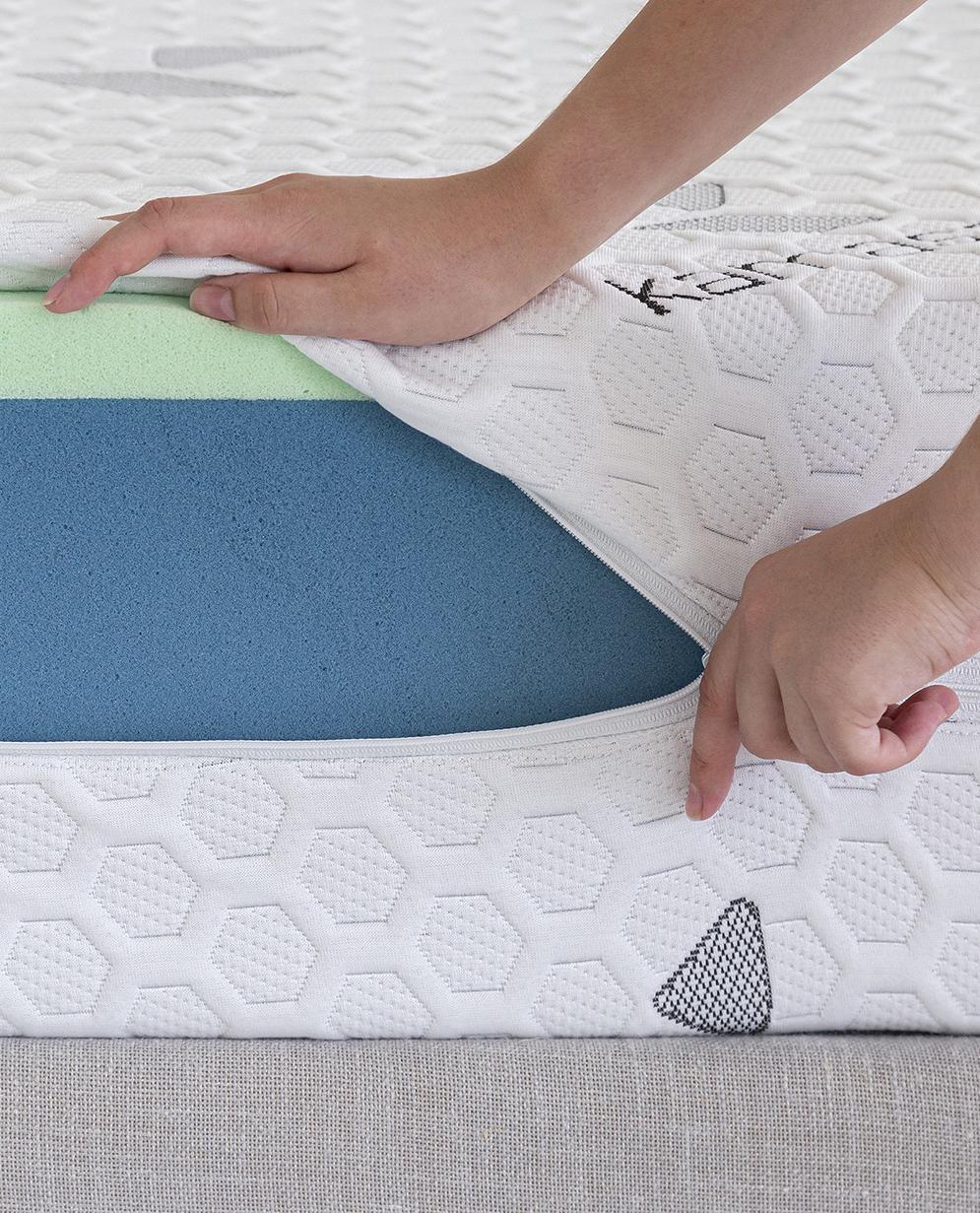 Верхний слой блока матраса изготовлен из пены с эффектом памяти Memory Foam® с добавлением соевого масла. Материал обеспечивает высокий анатомический эффект, практически снимая обратное давление на тело со стороны матраса.