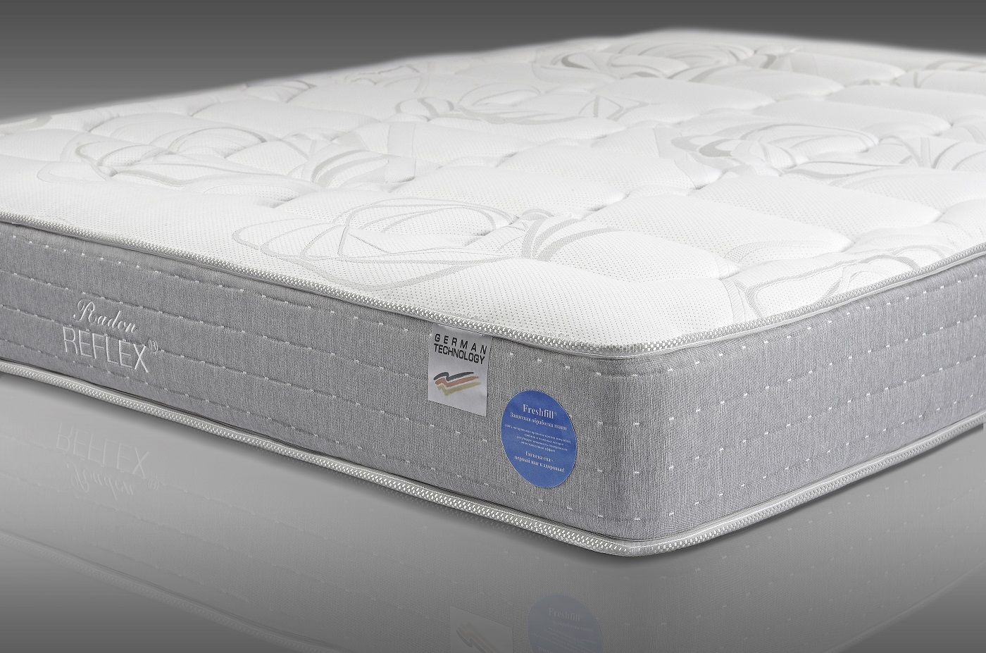 1. В качестве завершающих слоев в матрасах Radon используется вязкоэластичный слой "Мемоry Latex" с памятью формы (технология слепка с тела) - это анатомический слой, эффективно распределяющий нагрузку и расслабляющий мышцы (не затекают во время сна) снимает напряжение. Этот материал работает в неизменном виде на протяжении 15-20 лет, он отлично сохраняет свою форму и эластичность без потери качества.