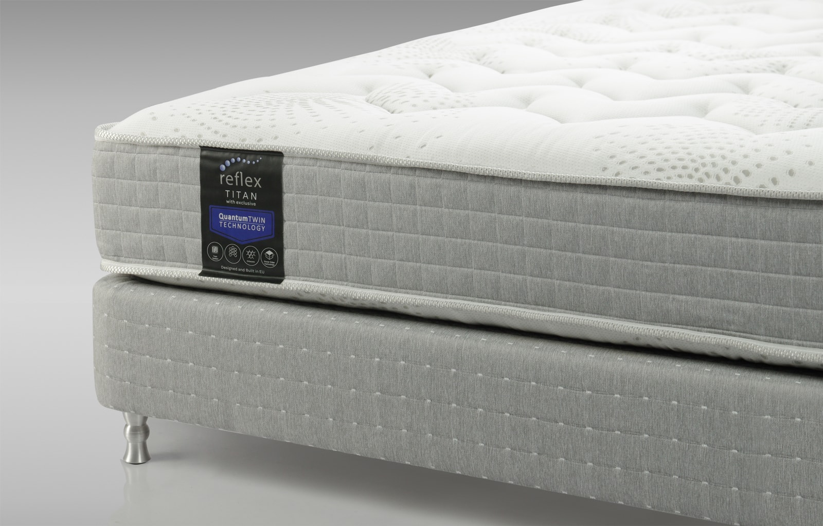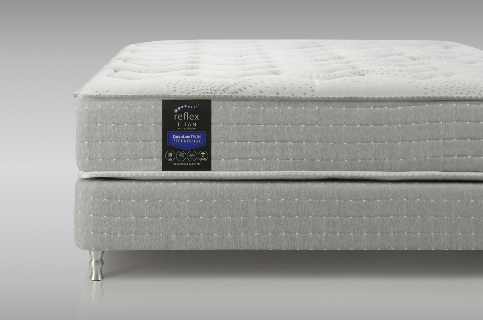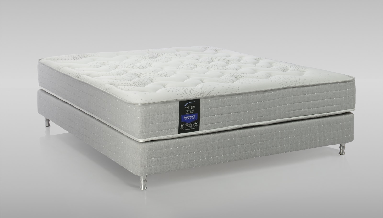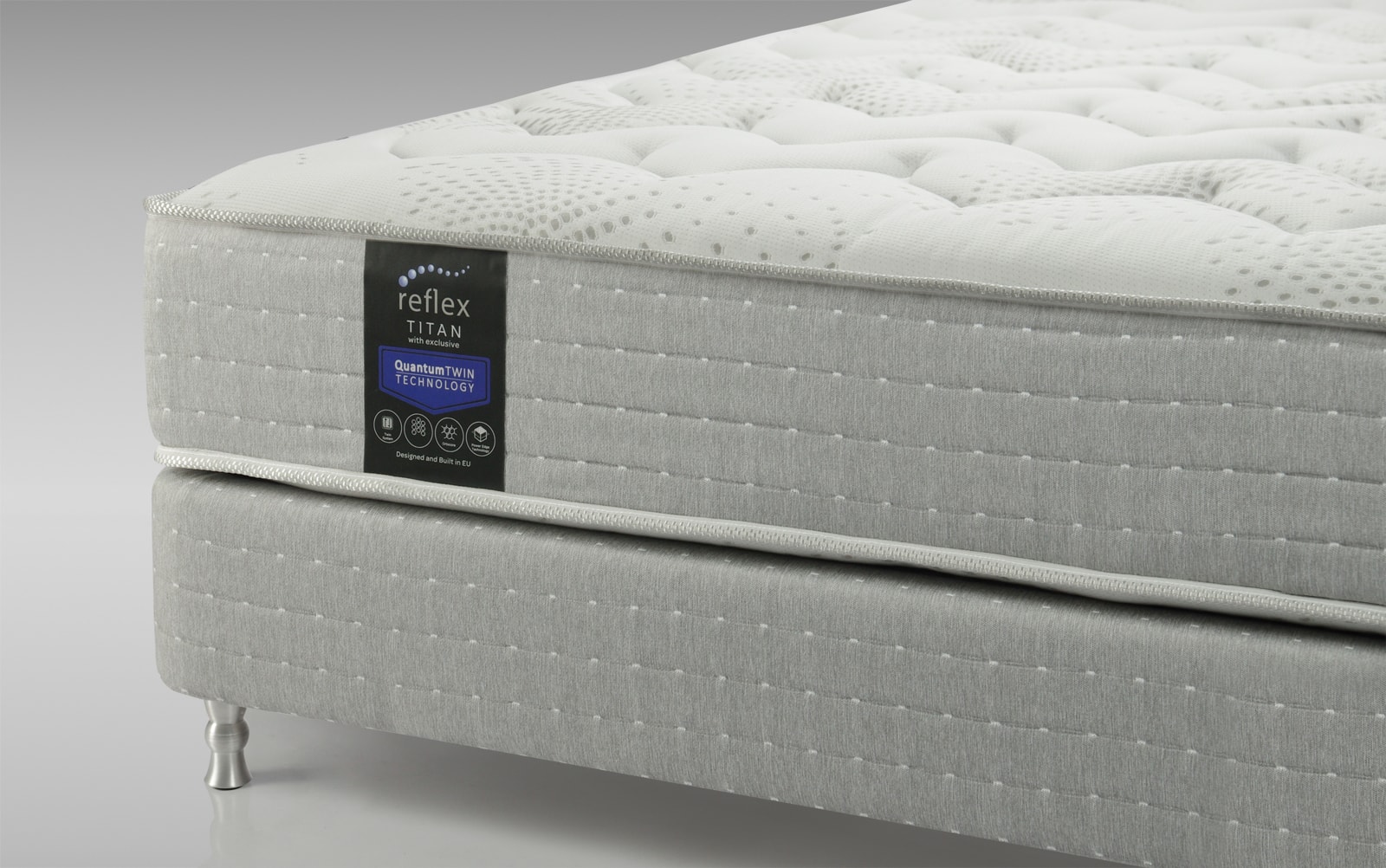 В основе матраса Reflex Titan используется система пружин «Twin System» (твин систем) – это система двойных пружин (пружина в пружине), внутренняя(вторая) пружина по высоте на 30% ниже внешней и включается в работу во время интенсивной нагрузки, как дополнительная поддерживающая опора. Именно поэтому данная система пружин идеально подходит для супругов с существенной разницей в весе. Более тяжелому партнеру не мягко, так как на него работает и внешняя и внутренняя пружины, а более легкому не жестко – так как в поддержке участвуют только внешние более высокие пружины, а внутренние пружинки вступают в работу, только во время необходимости, напр. в случае увеличения интенсивности нагрузки.