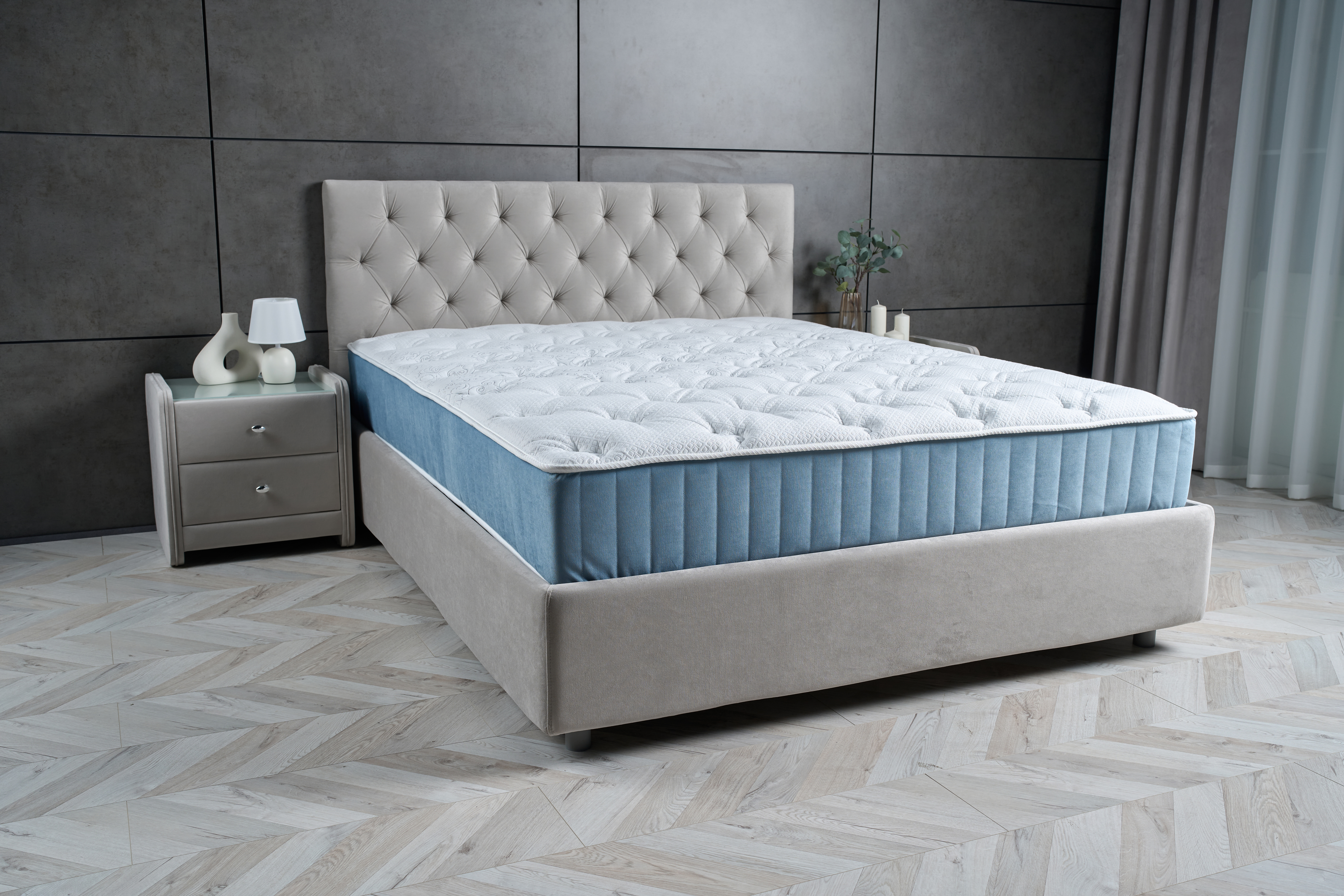 Стежка матраса имеет эксклюзивный "отрывной" рисунок. Такое сочетание обеспечивает максимальный комфорт, мягкость матраса и непременно станет украшением любой спальни.