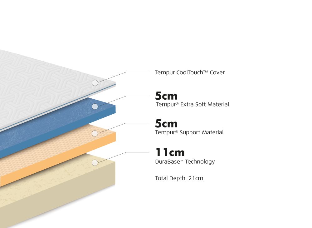 TEMPUR Cloud - коллекция, в которой используется материал TEMPUR Extra Soft. Он располагается сверху и укутывает ваше тело. Под ним находится несколько слоев оригинального материала TEMPUR, который обеспечивает поддержку. Модели данной коллекции восстанавливаются без изменения жесткости за счет открытых ячеек TEMPUR на протяжении всего срока использования. Коллекция TEMPUR Cloud дарит ощущение сна на облаке, которое будет с вами каждую ночь.