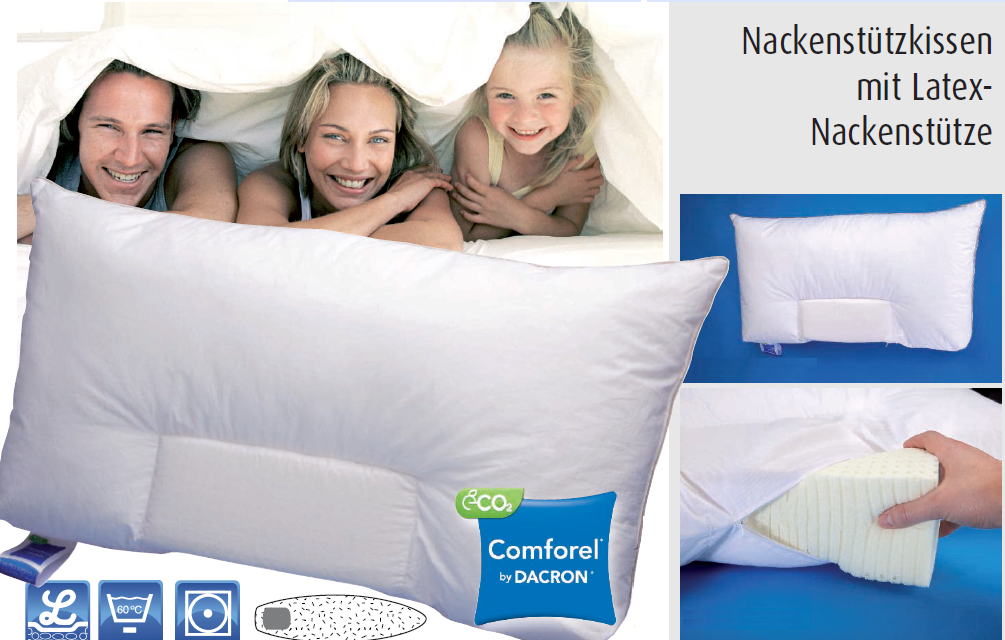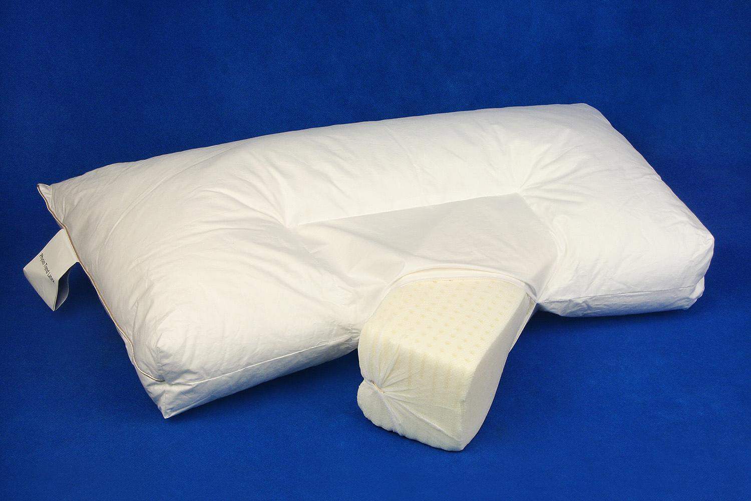 Анатомическая подушка с наполнителем ComforelR от DuPont и подшейным валиком из натурального латекса.