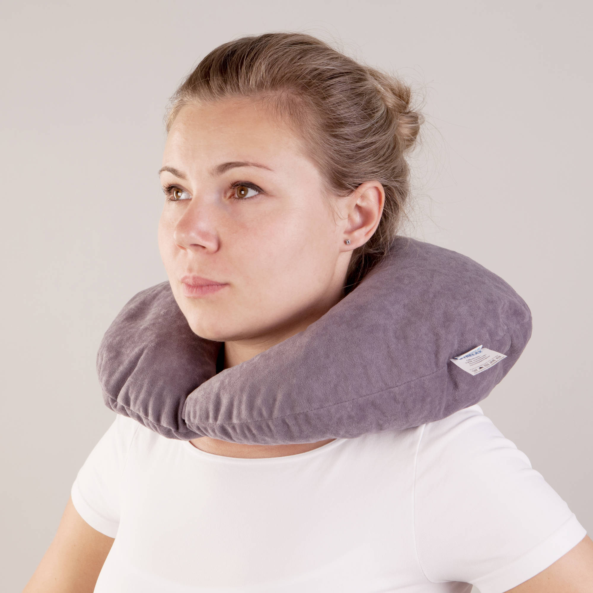 Наполнитель подушки позволяет изменять толщину валика и удобно размещать шею вне зависимости от неровностей поверхности;