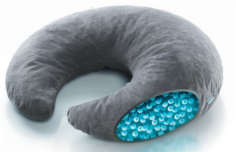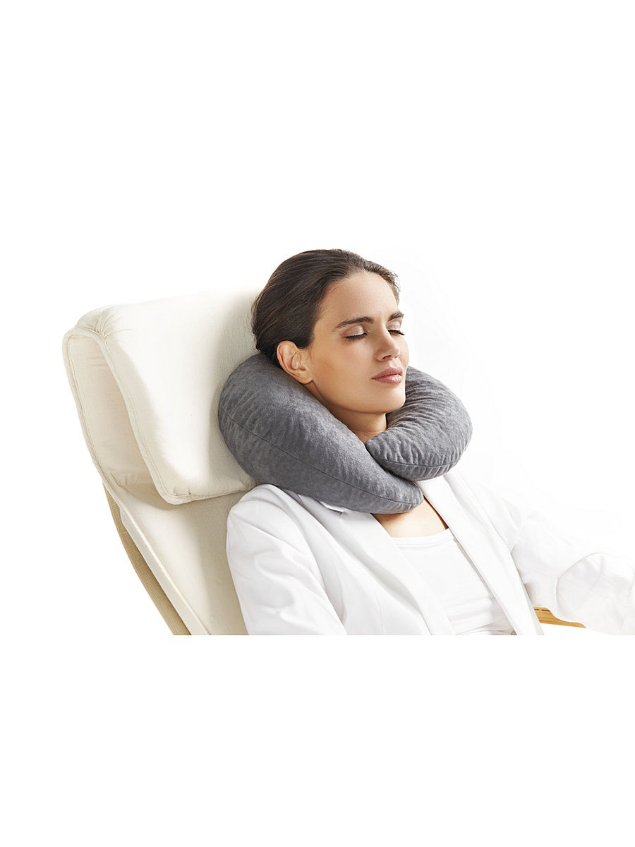 Подушку размещают в области шеи вырезом вперед так, чтобы при откидывании головы затылочная часть располагалась на валике подушки. Для поддержания свойств изделия необходимо периодически ее встряхивать.