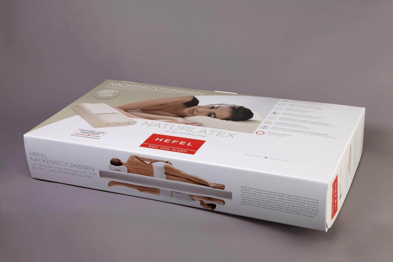 Материал HEFEL Naturlatex получают на 100% из молочка каучукового дерева. Поддержи- вающая подушка пригодна для аллергиков и эффективно снижает напряжение шейных мышц. Благодаря специальной перфорированной структуре достигается регулирование влажности и воздухопроницаемость.
