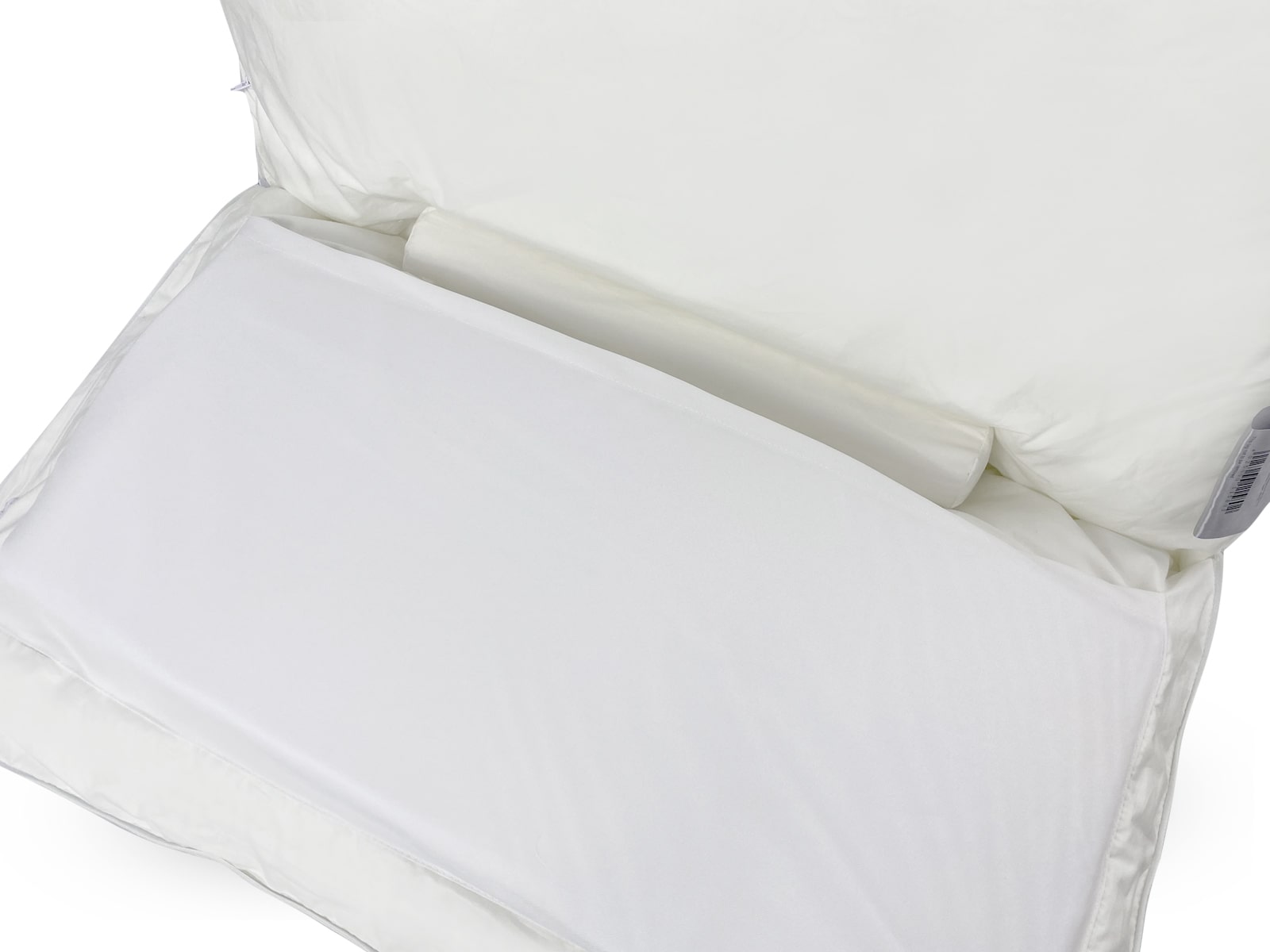 Двухкамерная подушка классической формы с двумя отсеками полностью раскрывается, а внутри интегрированы два съемных элемента (которые вынимаются при необходимости):