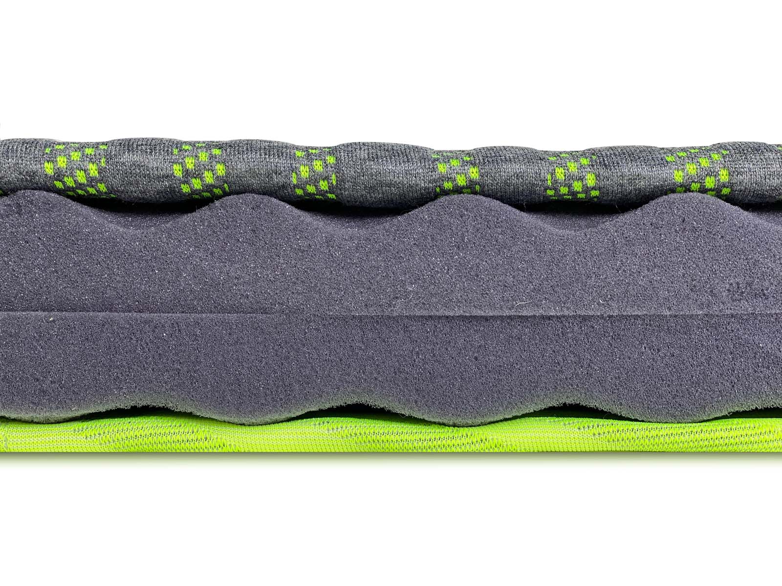 В основе тонкого матраса Reflex Element - ортопедический набор-конструктор Reflex NEWTONE Hi-Tec Foam Charcoal Firm 5 см. с технологией анатомической растяжки позвоночного столба. Этот анатомический набор эффективно распределяет нагрузку и расслабляет мышцы во время сна, за счет специальной рельефной, контурной технологии. Матрасик деликатно растягивает позвоночник во время сна, тем самым снимает напряжение и разгружает нервные окончания у позвоночного столба, перегруженные от статичной нагрузки под воздействием земного притяжения и продолжительного вертикального положения днем. Научно доказано, что напряжение и давление на нервные оканчания увеличивается с возрастом, из-за этого появляются боли и дикомфорт. Для того чтобы отсрочить неприятные проявления увеличивающейся нагрузки на позвоночный столб и застойные явления в области спины медики рекомендуют висеть на турникете, заниматься пилатесом и другими видами спорта, предполагающими растяжку позвоночника. Однако, в суматохе мегаполисов, мы не всегда успеваем уделять своему здоровью должную заботу, нам попросту не хватает на все времени! Именно поэтому немецкий концерн Reflex разработал данную систему профилактики, чтобы помогать справляться с задачей растяжения позвоночника во время сна.